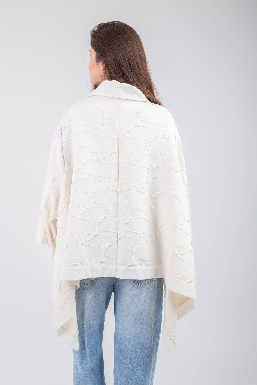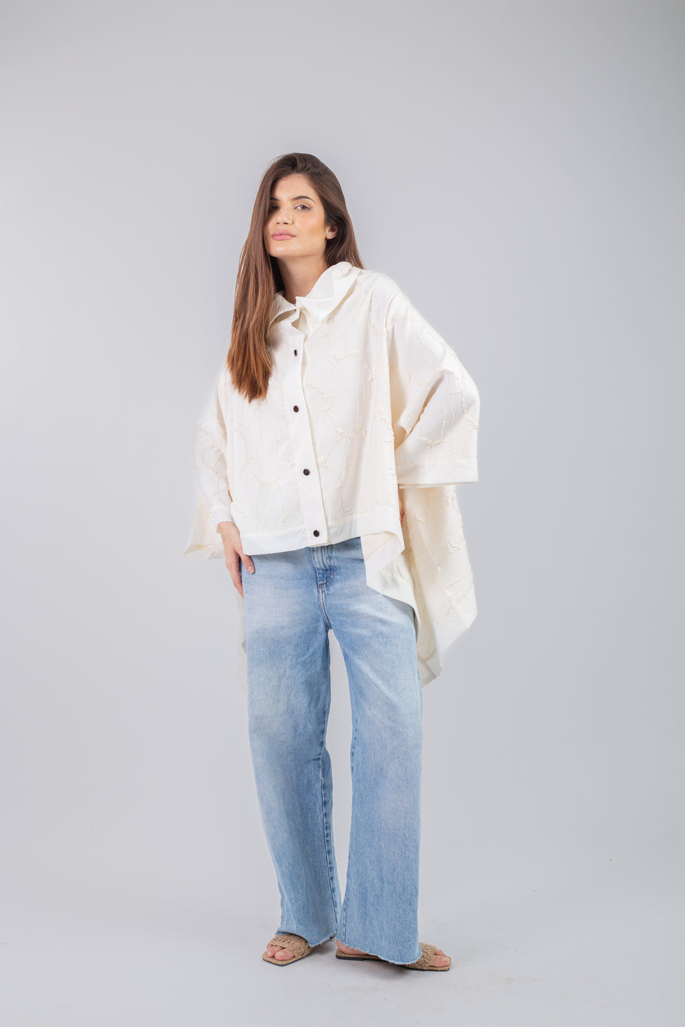 The Cape Shirt is crafted from jacquard fabric and designed with a flowing cape-style silhouette that adds movement and elegance. Its textured finish and unique cut make it a standout piece for both casual and refined looks.