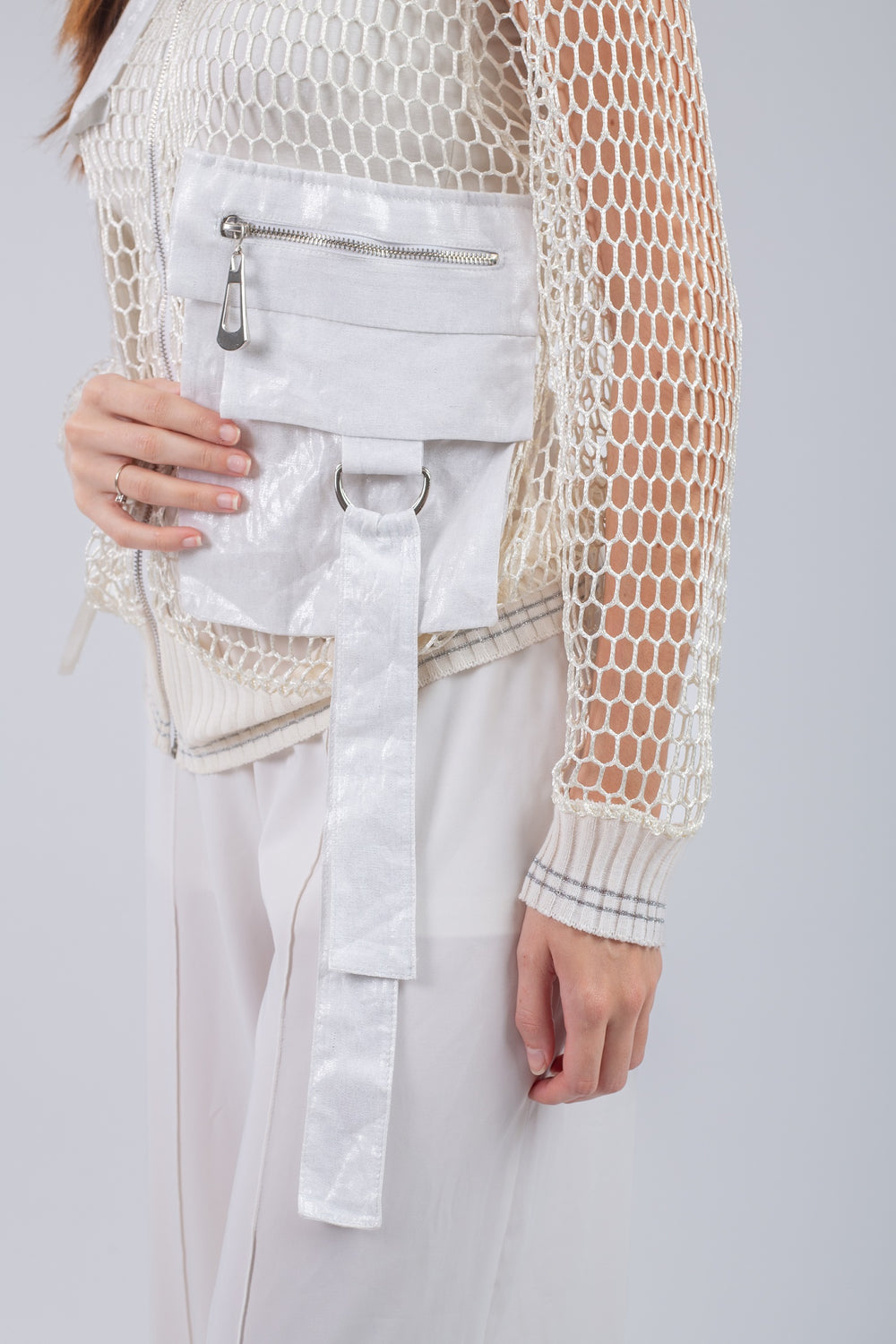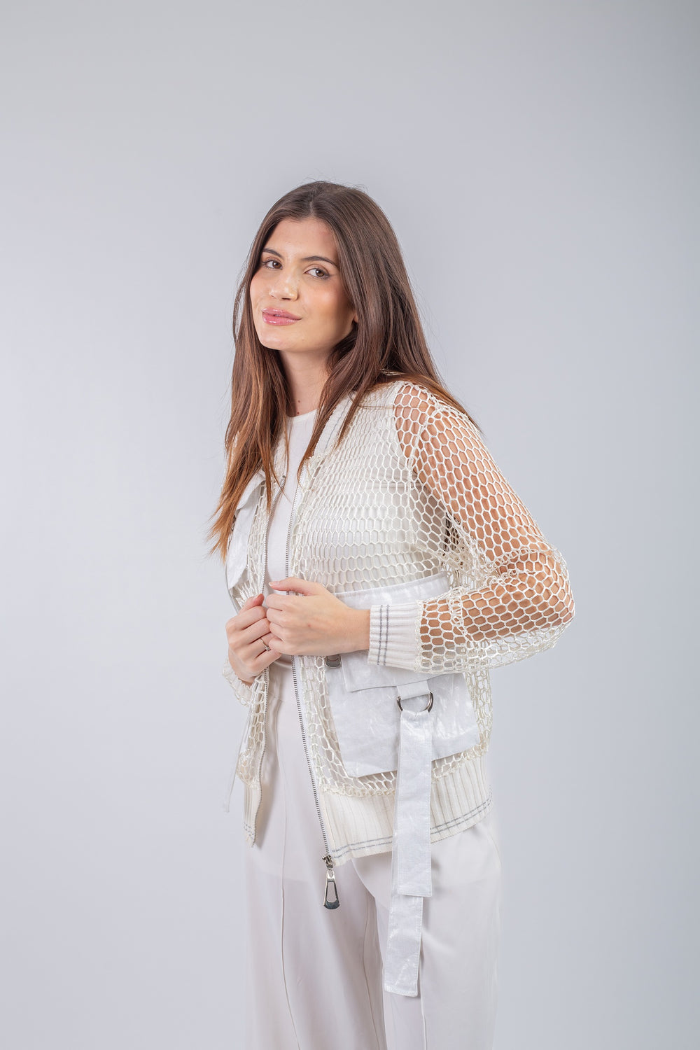 The Slot Jacket is a bold blend of shimmery net and shimmering Turkish linen pockets, designed to catch the light with every move. Lightweight and eye-catching, it’s the perfect layer to add a touch of glamour to your outfit.